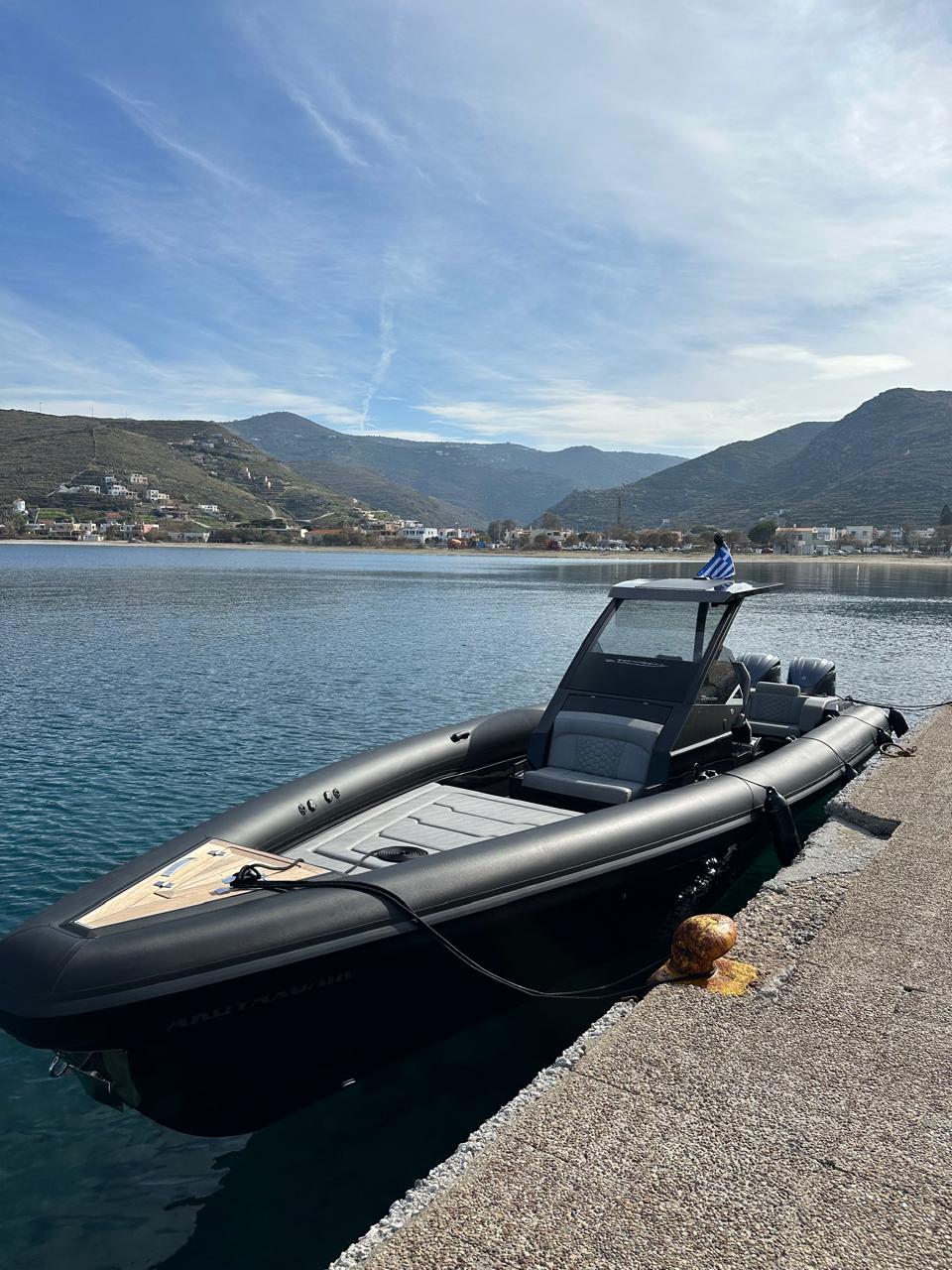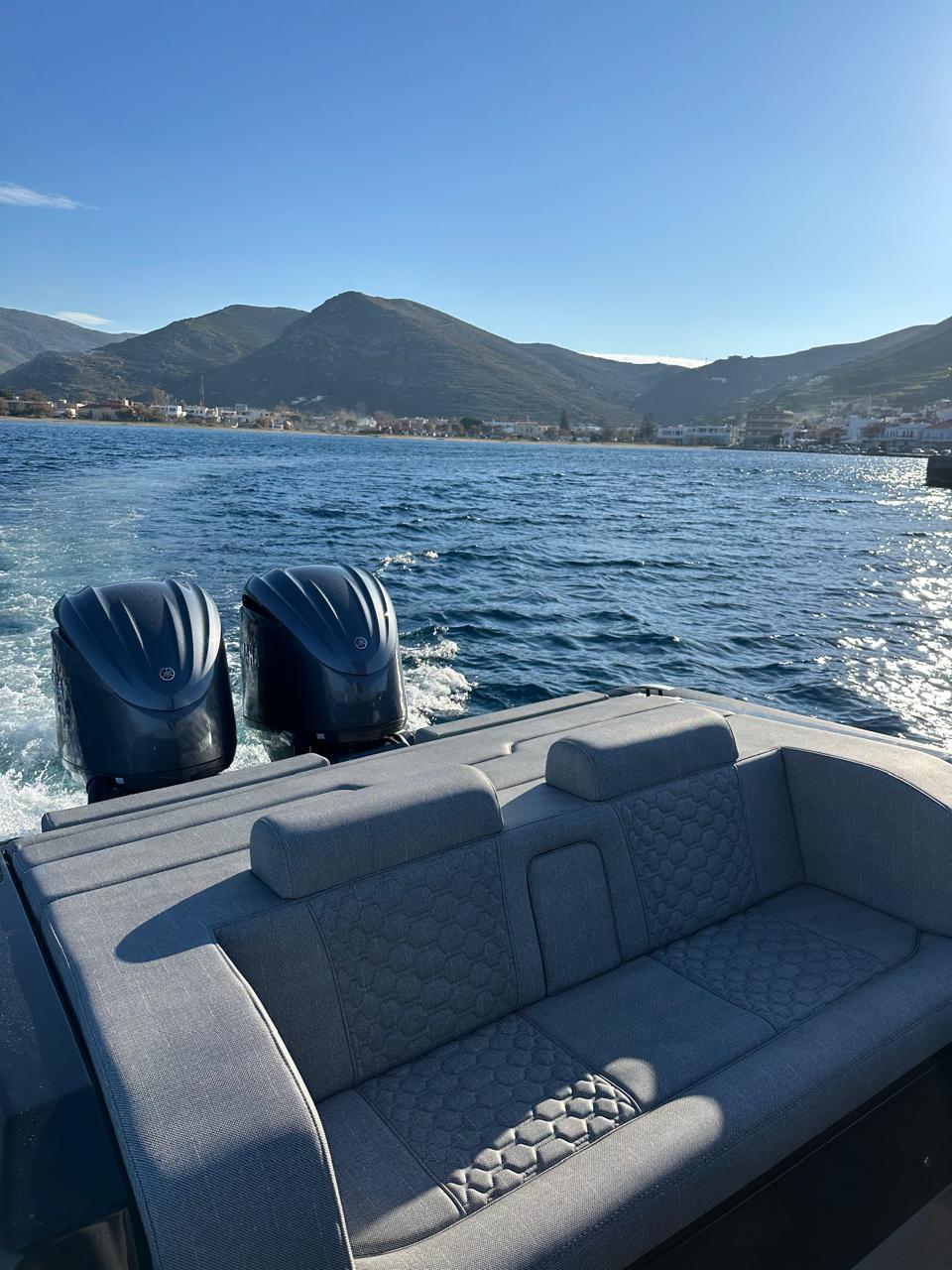 Measuring 12 meters in length and powered by twin Yamaha 300HP engines, this offshore powerhouse is built to dominate the Aegean waves. Whether you are island-hopping to Delos and Rhenia or chasing the sunset at Psarou, the Technohull 38 GS offers an incredibly smooth ride with a cruising speed of 35 knots and a breathtaking maximum speed of 60 knots.