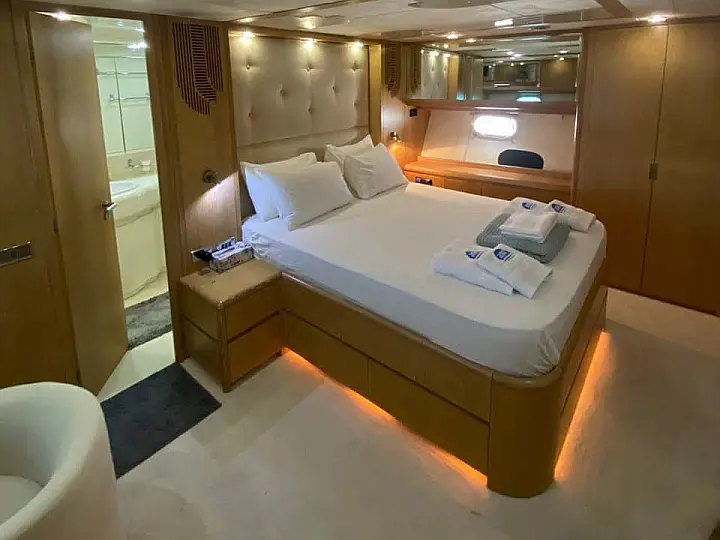 • Grand Accommodations: Features 4 luxurious cabins, including a Master double, a VIP double, and two twin cabins, providing sophisticated berths for up to 10 guests.