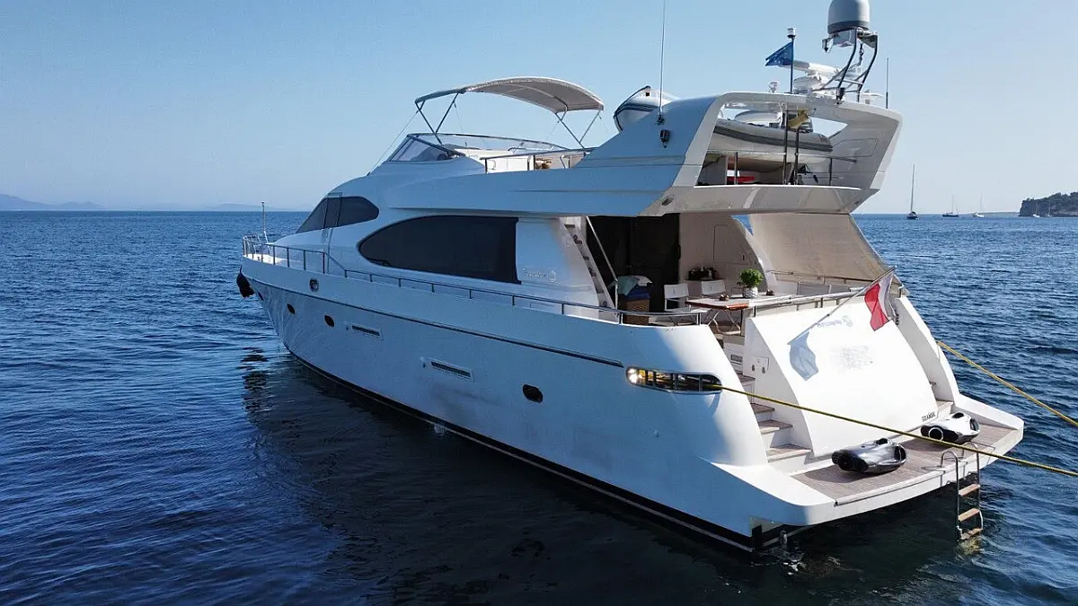 Elevate your seafaring expectations with the Like a Boss, a magnificent Technomarine Fly 75 that defines luxury living on the water. Originally built for elegance and extensively refitted in 2023, this 22.40-meter motor yacht combines classic grand-scale proportions with modern sophisticated finishes. Based in Kalamata, it serves as the ultimate private sanctuary for exploring the majestic Messinian coastline.