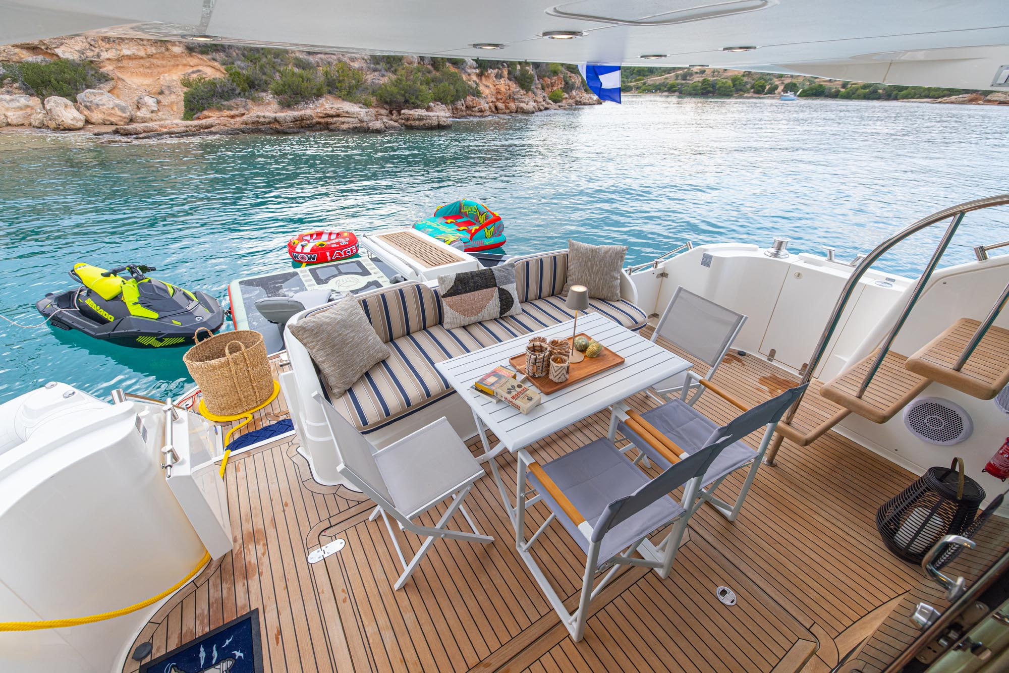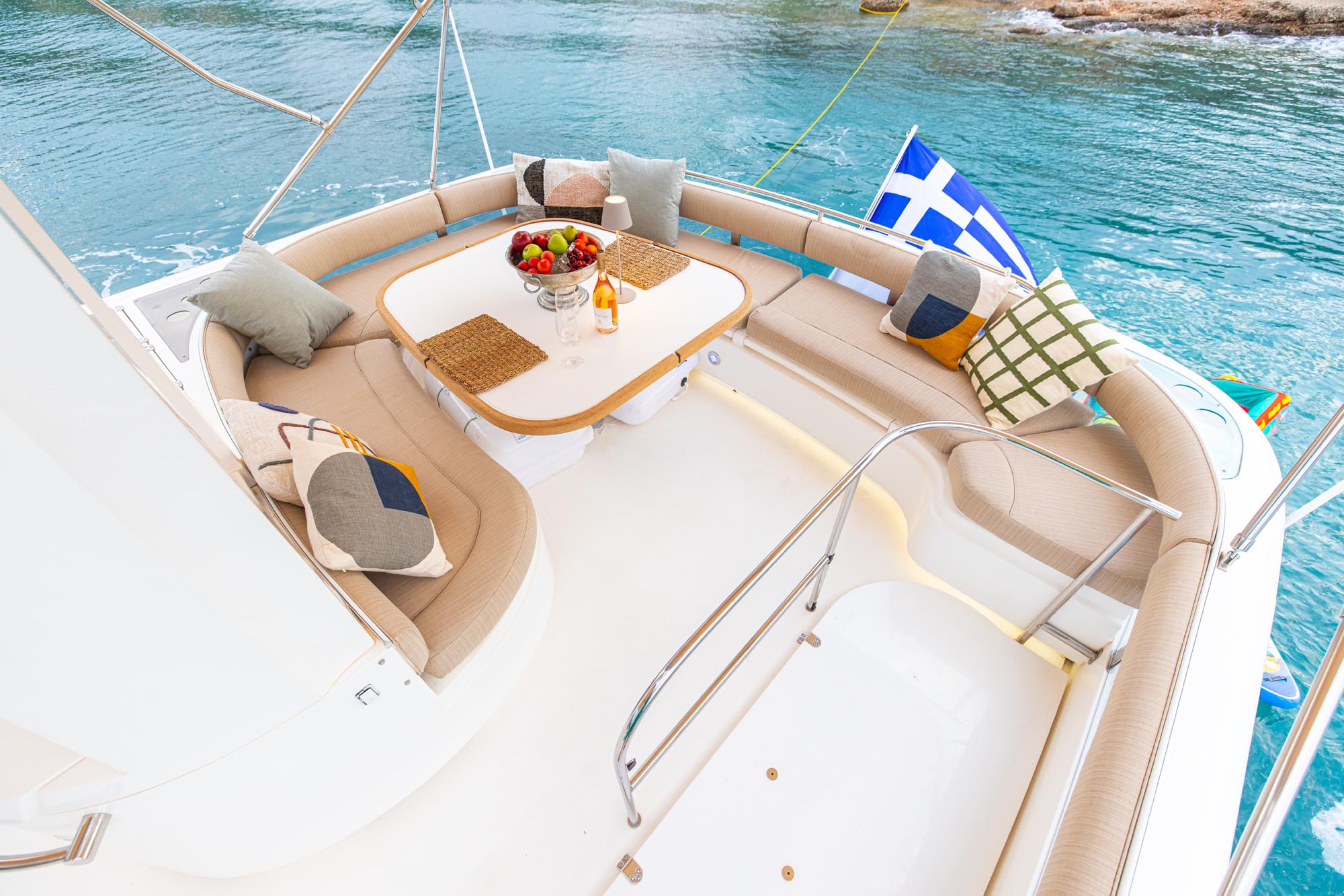 Relax on expansive sunbeds, dine outdoors with panoramic sea views, or enjoy the flybridge — a perfect space for socializing and taking in the scenery.