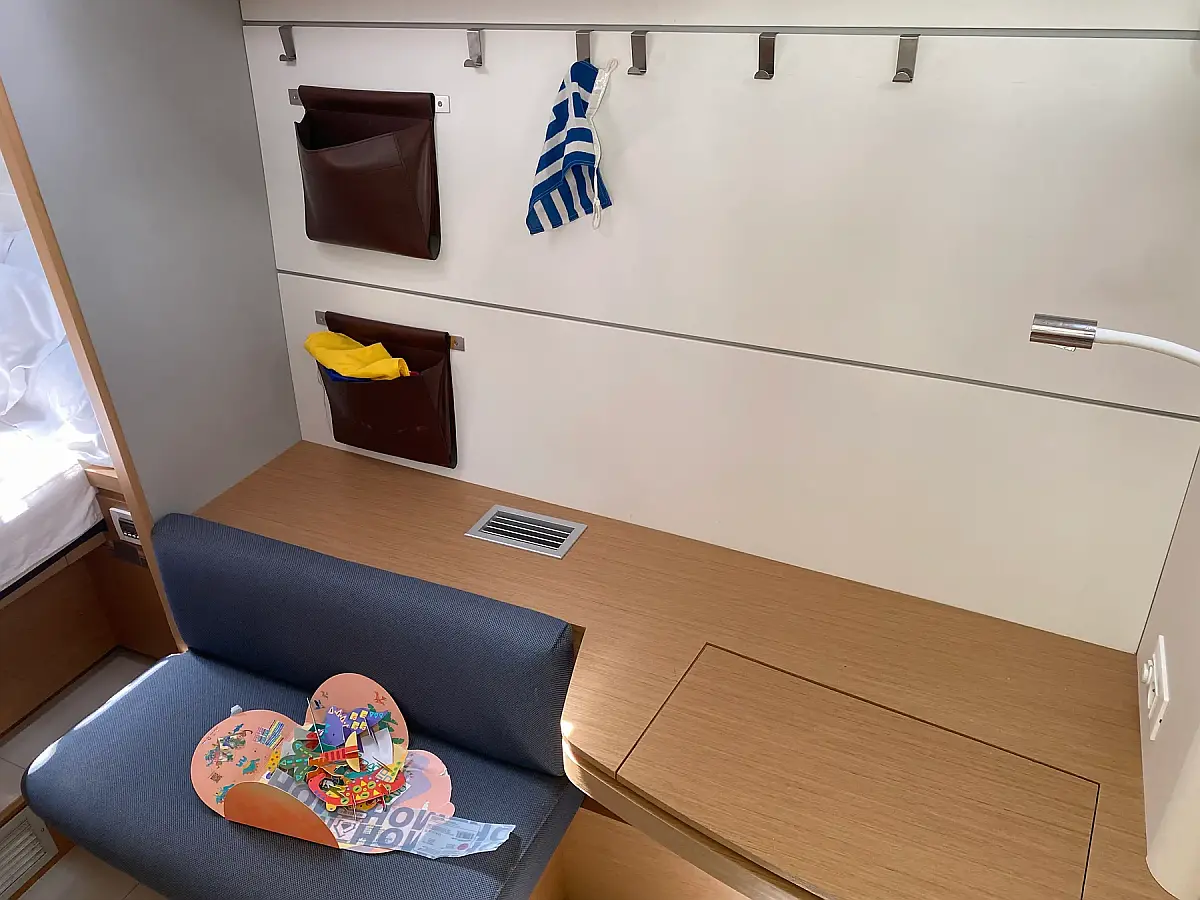 Entertainment & Deck: Enjoy high-quality sound with Cockpit Speakers, relax on comfortable Cockpit Cushions, and explore the coast with the included tender and Snorkeling Gear.