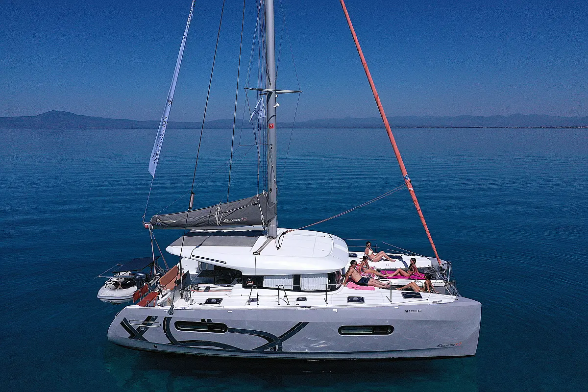 Embark on an extraordinary sailing adventure from Kalamata aboard SPEARHEAD, a stunning Beneteau Excess 12 catamaran (2020 model). Located in the beautiful region of Messinia, this 39ft vessel balances thrilling performance with sophisticated comfort, offering a unique private cruise experience in the Southern Peloponnese. While based in Kalamata, “SPEARHEAD” can also service other enchanting local ports, including Pylos, Methoni, Stoupa, and Limeni.